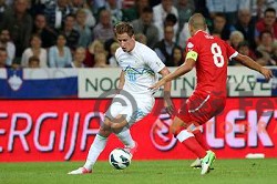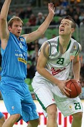 Nik Henigman in action during European championship 2026 qualifications match between Slovenia and Lithuania in Velenje, Slovenia on November 7, 2024