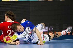 Players of Krim Mercator during semi-final match of EHF Women's Champions league between Krim Mercator (SLO) and Larvik (NOR), played in Stozice Arena, Ljubljana, Slovenia on April 13, 2013