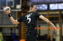 of Krim Mercator in action during Final of Vinko Kandija Memorial handball tournament between RK Krim Mercator and RK Gen I Zagorje, played in Galjevica Hall, Ljubljana, Slovenia on September 13, 2014