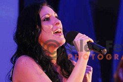 Singer Jerica Gaber performs during Football Association of Slovenia NZS Gala Night at Brdo pri Kranju, Slovenia on December 19, 2011