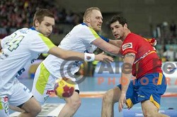 Miha Zvizej of Slovenia in action during semi-final match between Slovenia and Spain at Handball World Championships 2013 in Barcelona, Spain on January 25, 2013