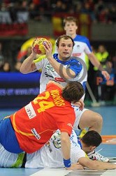 Uros Zorman of Slovenia in action during semi-final match between Slovenia and Spain at Handball World Championships 2013 in Barcelona, Spain on January 25, 2013
