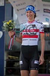 Linda Sanarini (ITA), winner of Girls Road Cycling race at EYOF 2023 in Maribor, Slovenia on July 27, 2023