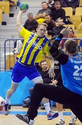 action during EHF Cup handball match between Ribnica (Slovenia) and Fuchse (Germany) in Ribnica, Slovenia on February 9, 2017
