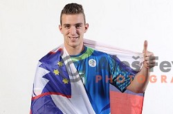 Blaz Janc, member of Slovenia Olympic Handball Team at official photo shooting in hotel Planja at Rogla Olympic Centre, Slovenia on July 4, 2016