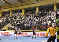 of Krim Mercator during handball match between Krim Mercator and Hypo Noe at Vinko Kandija Memorial Tournament in Galjevica hall, Ljubljana, Slovenia on August 19, 2017