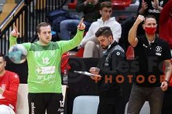 Ziga Mlakar in action during 1.NLB league handball match between Celje Pivovarna Lasko and Gorenje Velenje in Arena Zlatorog, Celje, Slovenia on May 7, 2022