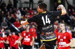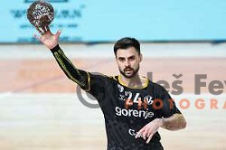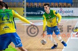 in action during 1.NLB league handball match between Gorenje Velenje and Celje Pivovarna Lasko in Velenje, Slovenia on December 15, 2024