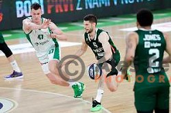 Jaka Blazic of Cedevita Olimpija and Miha Skedelj of Krka in action during The Final of the Slovenian Men's Cup basketball match between Cedevita Olimpija and Krka in Kodeljevo Hall, Ljubljana, Slovenia on February 17, 2024. Foto: Filip Barbalic