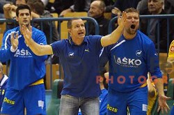 Tomaz Ocvirk, head coach of Celje Pivovarna Lasko in action during EHF Champions League handball match between Celje Pivovarna Lasko and Aalborg in Arena Zlatorog, Celje, Slovenia on September 16, 2020