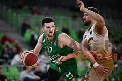 Karlo Matkovic in action during ABA League 2023-2024 regular season basketball match between Cedevita Olimpija and Igokea in Ljubljana, Slovenia on January 20, 2024