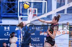 in action during 1.DOL match between Calcit Volley and OTP Banka Branik in Kamnik, Slovenia on October 22, 2024