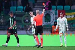 Charles Thalisson receives red card during UEFA Conference League 2024/25 football match between Olimpija (SLO) and Cercle Brugge (BEL) in Ljubljana, Slovenia on December 12, 2024