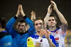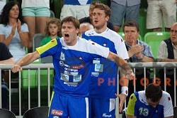 Marko Bezjak, David Miklavcic of Slovenia during handball match Slovenia-Belarus in last round of qualification for European Championship 2014, played in Stozice Arena, Ljubljana, Slovenia on June 16, 2013