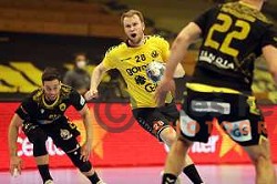 Timotej Grmsek in action during semi-final of EHF European Cup m match between Gorenje Velenje and AEK Athens in Velenje, Slovenia on April 24, 2021