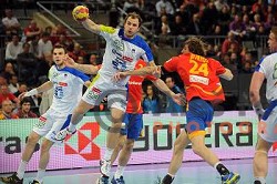 Uros Zorman of Slovenia in action during semi-final match between Slovenia and Spain at Handball World Championships 2013 in Barcelona, Spain on January 25, 2013