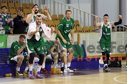 Ive Ivanov, Imran Polutak, Matic Rebec action in Nova KBM league basketball match between Union Olimpija and Krka in Tivoli Hall, Ljubljana, Slovenia on April 11, 2016