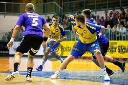 David Miklavcic in action during NLB league handball match between Slovan and Gorenje in Kodeljevo Hall, Ljubljana, Slovenia on September 11, 2020