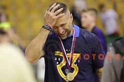 Tomaz Ocvirk, head coach of Celje Pivovarna Lasko celebrates victory and title of NLB League and becames Slovenian Handball Champions in Zlatorog Arena, Celje on May 31, 2019