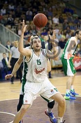 Sava Lesic in action in Nova KBM league basketball match between Union Olimpija and Krka in Tivoli Hall, Ljubljana, Slovenia on April 11, 2016