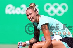 Polona Herzog of Slovenia Olympic team during practice session in Olympic Park Tennis Centre , Rio de Janeiro 2016 Olympic games on August 4, 2016