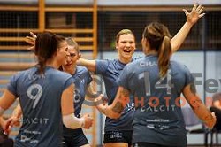 action during Sportklub 1A DOL league volleyball match between Calcit Volley and Nova KBM Branik in Kamnik, Slovenia on March 4, 2023