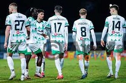 Marcel Ratnik and players of Olimpija celebrate a goal during Prva liga Telemach 2024/2025 football match between Kalcer Radomlje and Olimpija in Domzale Sports Park, Domzale on March 15, 2025