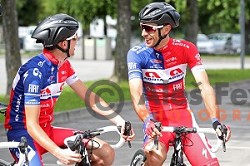 Domen Novak and Radoslav Rogina of Adria mobil professional cycling team before start of Tour de Slovenie in Ljubljana on June 16, 2016