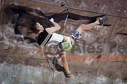 Katja Kadic in action during Triglav The Rock balvan climbing competition in Ljubljana, Slovenia on May 20, 2017