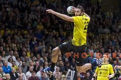 Matic Groselj in action during EHF Champions League handball match between Celje Pivovarna Lasko and Nantes in Zlatorog Arena in Celje, Slovenia on November 25, 2020