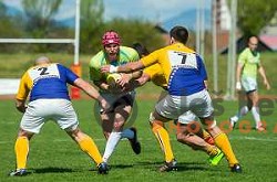 in action during rugby match between Slovenia and Bosnia and Hercegovina at Stadion Zak, Ljubljana, Slovenia, on April 8th, 2017.
