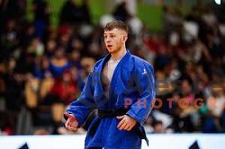 Narsej Lackovic of Slovenia (White) competes at Ljubljana European Open 2025 Judo Tournament in Ljubljana, Slovenia on February 9, 2025