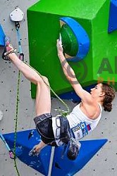Jennifer Buckley in action during Qualification in sports climbing at IFSC World Cup in Koper, Slovenia on September 6, 2024