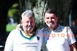 Former footballers Milos Kadivnik and Saso Udovic as spectators during first round of WTA 125 Zavarovalnica Sava Slovenia Open Tennis Tournament in Ljubljana, Slovenia on September 10, 2024