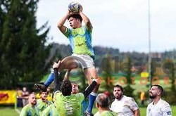 In action during Rugby Europe Conference D match between Slovenia and Kosovo in Stanezice Oval Ljubljana, Slovenia on October 12, 2024