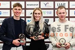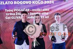 Tadej Pogacar, Urska Zigart and Gal Glivar at event Zlato Rogovo Kolo - Golden Rog Bike at 75th Anniversary of KD Rog in Ljubljana, Slovenia on November 11, 2024