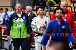 Coach Filip Lescak and David Starkel of Slovenia, who competes in Men's -60 kg category during Ljubljana European Open 2025 Judo Tournament in Ljubljana, Slovenia on February 8, 2025