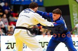 David Bertalanic Zizek of Slovenia (Blue) competes at Ljubljana European Open 2025 Judo Tournament in Ljubljana, Slovenia on February 9, 2025