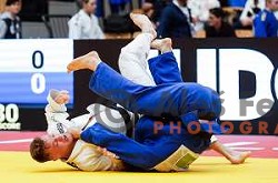 Demets of Belgium (blue) competes at Ljubljana European Open 2025 Judo Tournament in Ljubljana, Slovenia on February 8, 2025