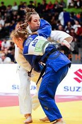 Kaja Kajzer of Slovenia competes in Women’s -63 kg category during Ljubljana European Open 2025 Judo Tournament in Ljubljana, Slovenia on February 8, 2025