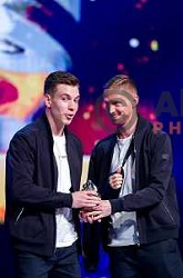 Mark Zabukovnik and Zan Karnicnik of NK Celje during Best Slovenian Sportsman of 2025 - Sportnik leta in Ljubljana, Slovenia on December 9, 2025