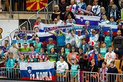 Slovenian players and their fans during Euro Men 2026 Qualifiers handball match between Slovenia and North Macedonia in Bonifika Hall, Koper, Slovenia on March 16, 2025