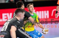 Jesus Hurtado Vergara of RK Celje Pivovarna Lasko in action during Semifinal of Slovenian Handball Cup between MRK Krka and RK Celje Pivovarna Lasko in Ljubljana, Slovenia on April 4, 2025. Photo: Filip Barbalic