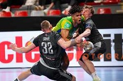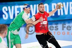 Blaz Blagotinsek in action during Euro Men 2026 Qualifiers handball match between Slovenia and North Macedonia in Bonifika Hall, Koper, Slovenia on March 16, 2025