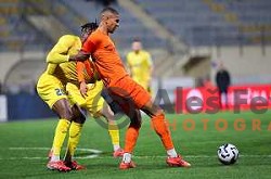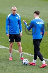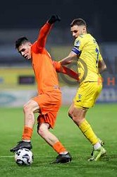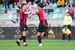 Marcel Ratnik and Marko Brest celebrate a goal during Prva liga Telemach 2024/2025 football match between Primorje and Olimpija in Ajdovscina, Slovenia on April 6, 2025