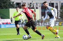 in action during Prva liga Telemach 2024/2025 football match between Primorje and Olimpija in Ajdovscina, Slovenia on April 6, 2025