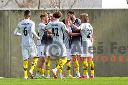 Marcel Ratnik and Marko Brest celebrate a goal during Prva liga Telemach 2024/2025 football match between Primorje and Olimpija in Ajdovscina, Slovenia on April 6, 2025