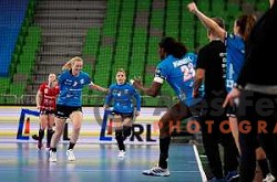 Manca Juric of Krim Mercator in action during EHF Women's Champions League match between Krim Mercator and CS Gloria in Ljubljana, Slovenia on February 8, 2025.