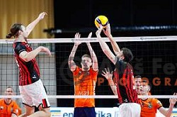 Dejan Vincic in action during the third match of the Final of 1.DOL Sportklub Volleyball League between ACH Volley and Alpacem Kanal in Tivoli Hall, Ljubljana, Slovenia on April 22, 2025