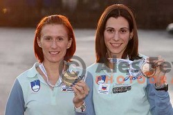 Sonja Roman and Marija Sestak at reception of AZS after they won medals at European Indoor Championships. Ljubljana 9.3.2009
